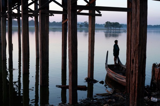 旅行肖像单元作品《缅甸船童》,由摄影师杰克 霍伊勒(Jack Hoyle)于缅甸乌本桥拍摄。少年渔民站在小船上注视远方。