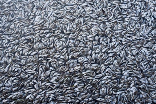 户外景物单元作品《死鱼》,由摄影师路易斯 古特曼(Luis Gutman)于巴西里约热内卢的罗德里戈湖拍摄,展现了大量鱼类因水中缺氧而死的悲剧。