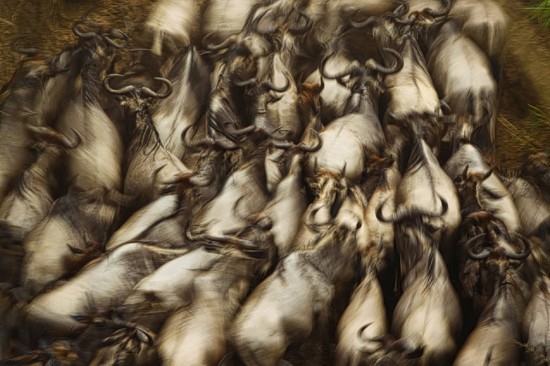 户外景物单元作品《牛羚》,由摄影师阿布杜拉兹 阿拉索兹(Abdulaziz Alasous)于肯尼亚拍摄,展现了牛羚成群结队渡过马拉河的壮观景象