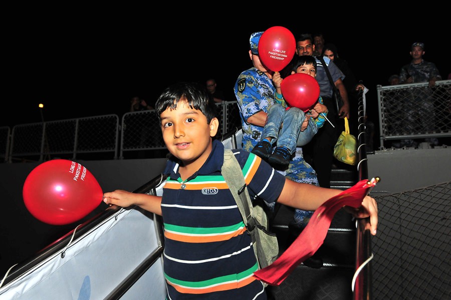 几小时后,军舰到达亚丁湾西部的吉布提。176名巴基斯坦人走下船,准备换乘巴基斯坦航空的飞机回国时,不知是谁在人群中高喊了一句:“Pak Cheen Dosti Zindabad!”(巴基斯坦国语乌尔都语“巴中友谊万岁”的发音),随即得到了其他人的热烈响应,“万岁”的呼声,在吉布提的海港回响。