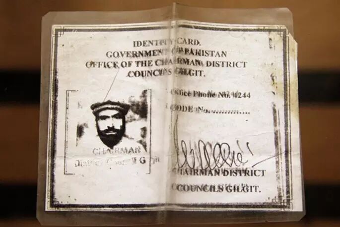 巴基斯坦吉尔吉特中国烈士陵园守墓者阿里﹒艾哈迈德的工作证。 杨迅 摄