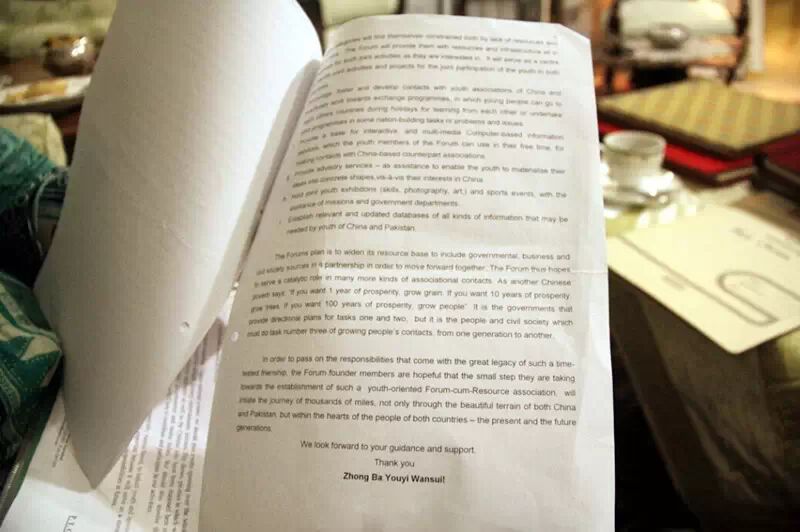 每天都会有各国人士前往墓地凭吊,艾哈迈德说,在陵园的留言本上,“巴中友谊万岁”的表述最多。在很长一段时间里,进入陵园需要得到艾哈迈德的同意,其中一个重要前提,就是说一句“Pak Cheen Dosti Zindabad!(巴中友谊万岁!)”